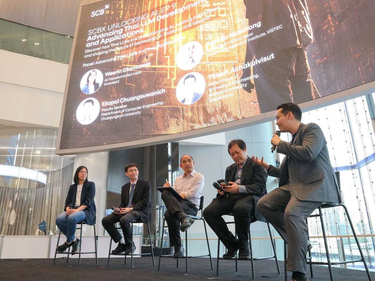 งาน SCBX Unlocking AI EP 9: Advancing ThaiLLM Development and Applications นอกจากอัดแน่นไปด้วยการบรรยายถึง LLM ในแง่มุมที่น่าสนใจ ยังมีการเสวนาปิดท้ายด้วย ชื่อเดียวกับธีมงานเลยนั่นคือ Advancing Thai LLMs and Their Applications