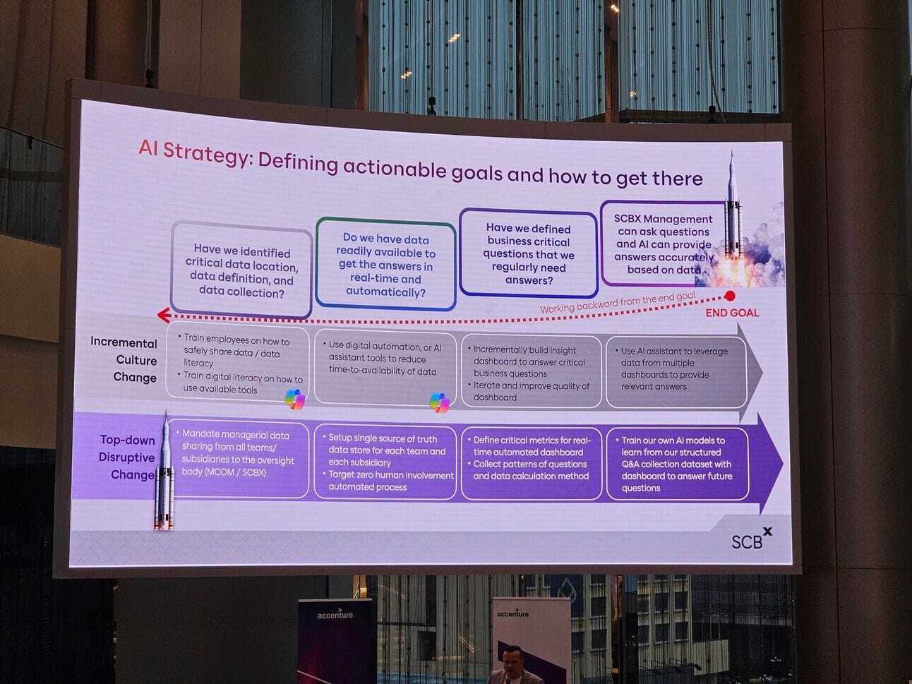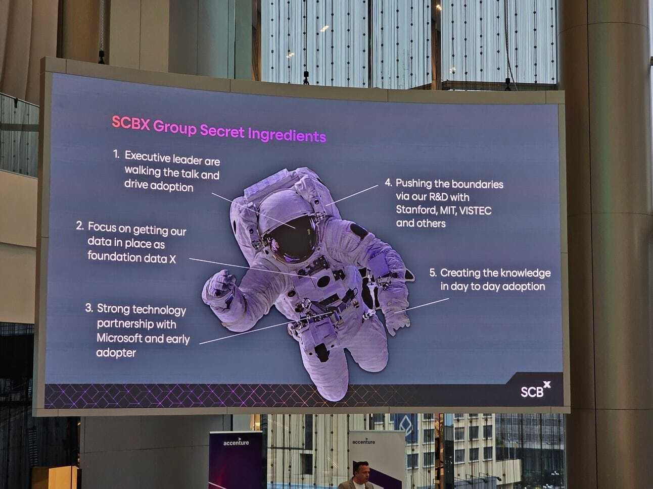 จากการสำรวจอนาคตของ SCBX และจากการใช้ Generative AI เบื้องต้นสามารถถอดบทเรียนได้หลายประการ ซึ่งคุณเดนนิสเชื่อว่า เป็นจุดเริ่มต้นของการทดลองในระยะยาว เพื่อให้ใช้งานได้เกิดผลลัพธ์ดีที่สุด