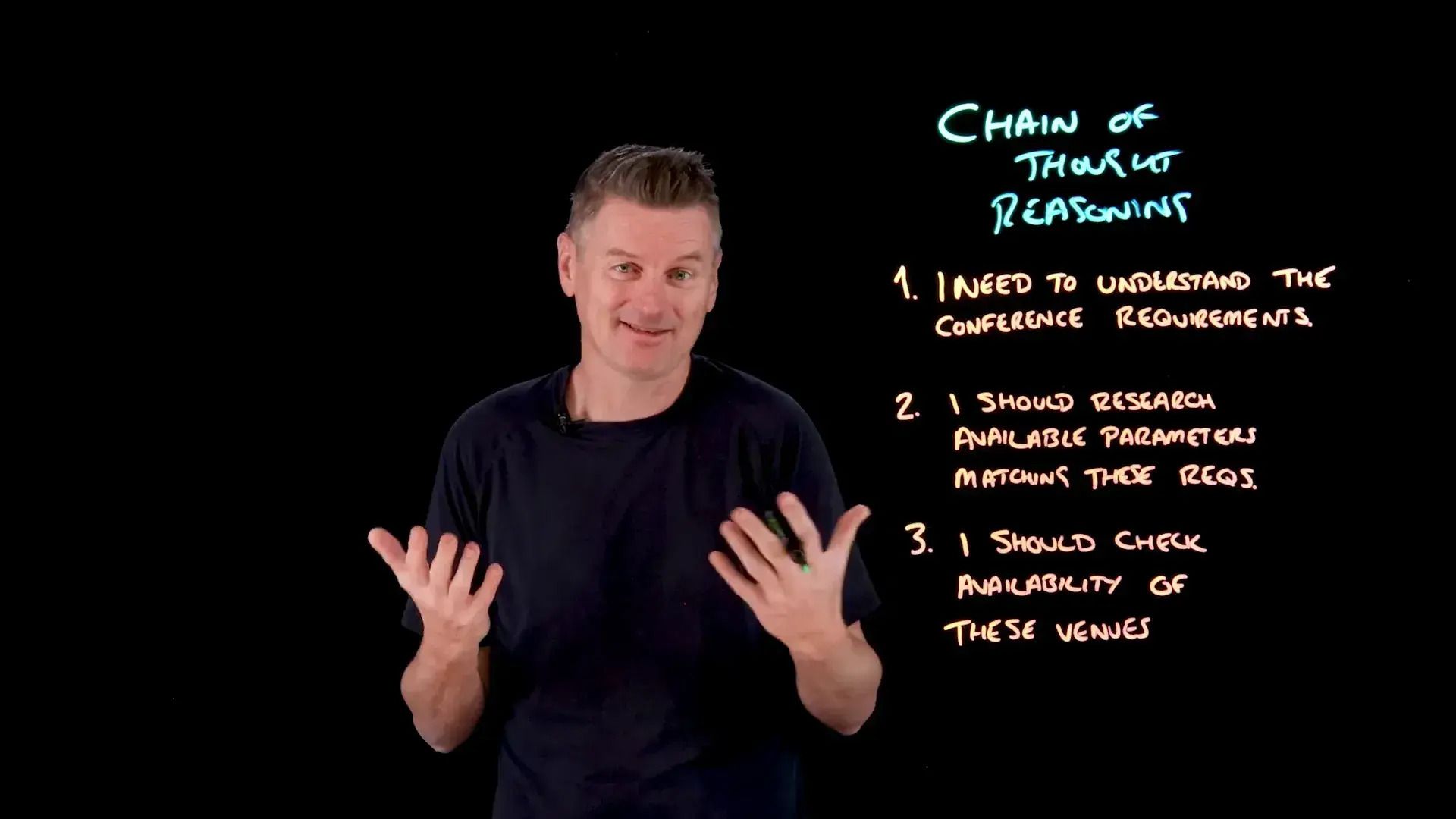 ลองจินตนาการถึง Agentic AI ที่ได้รับมอบหมายให้จัดงานประชุมใหญ่ AI จะเริ่มต้นด้วยการตั้งคำถามกับตัวเอง เช่น ต้องรู้จำนวนวันที่จัดงาน งบประมาณ และสถานที่ที่ต้องการ จากนั้นจึงค้นหาสถานที่ที่ตรงกับความต้องการเหล่านั้น ตรวจสอบความพร้อมใช้งาน และดำเนินการจอง