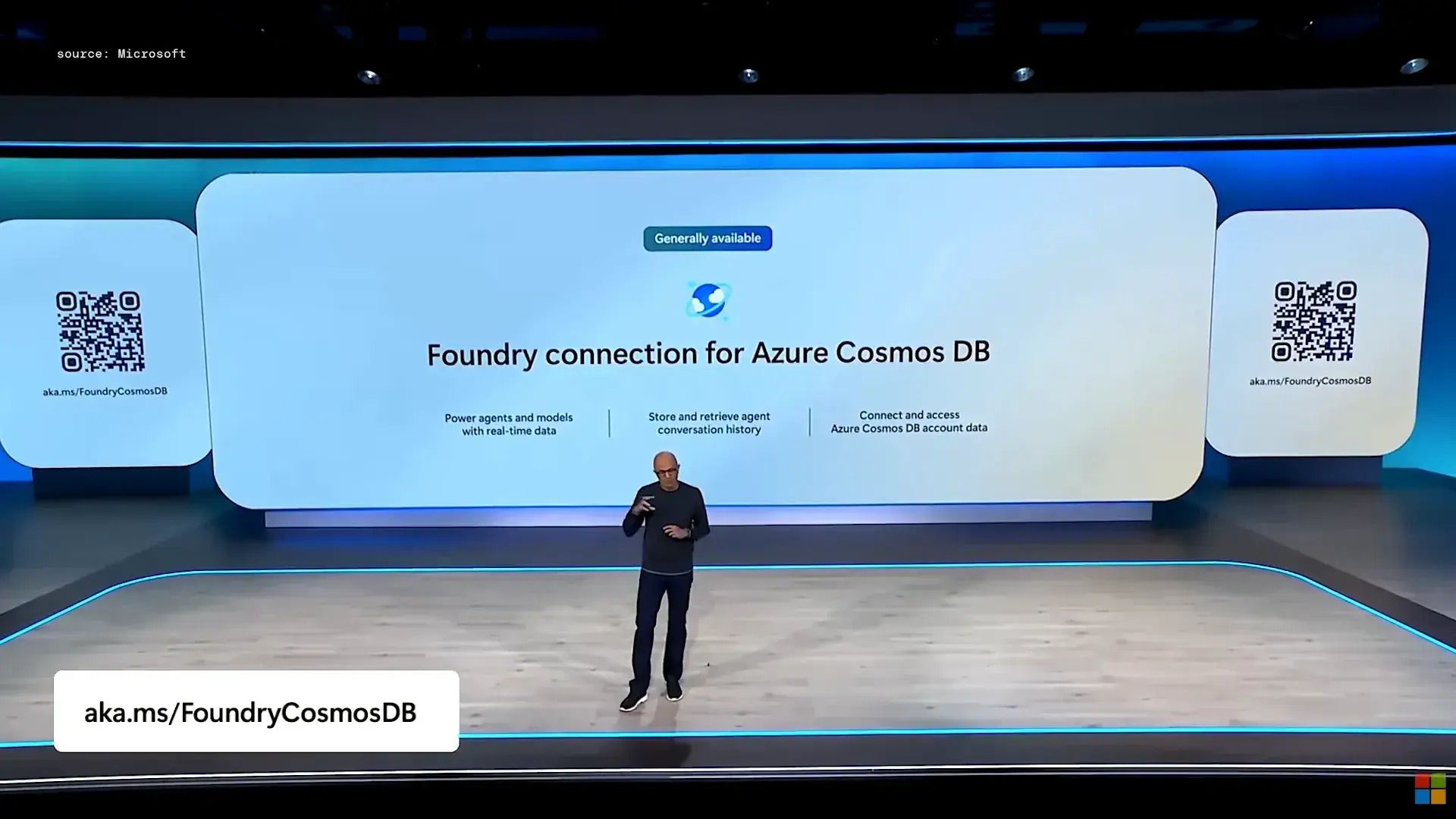 Microsoft ประกาศผนวกฐานข้อมูล Cosmos DB เข้ากับ Azure AI Foundry ทำให้ AI Agents สามารถเก็บและเรียกคืนข้อมูล เช่น ประวัติการสนทนา หรือใช้สำหรับระบบ Retrieval-Augmented Generation (RAG) ได้อย่างลื่นไหล นอกจากนี้ Cosmos DB ยังถูกรวมเข้ากับ Microsoft Fabric เพื่อรองรับข้อมูลกึ่งโครงสร้าง เช่น ข้อความ รูปภาพ และเสียง ขยายขอบเขตการจัดการข้อมูลให้ครอบคลุมและพร้อมสำหรับแอป AI ในยุคใหม่
