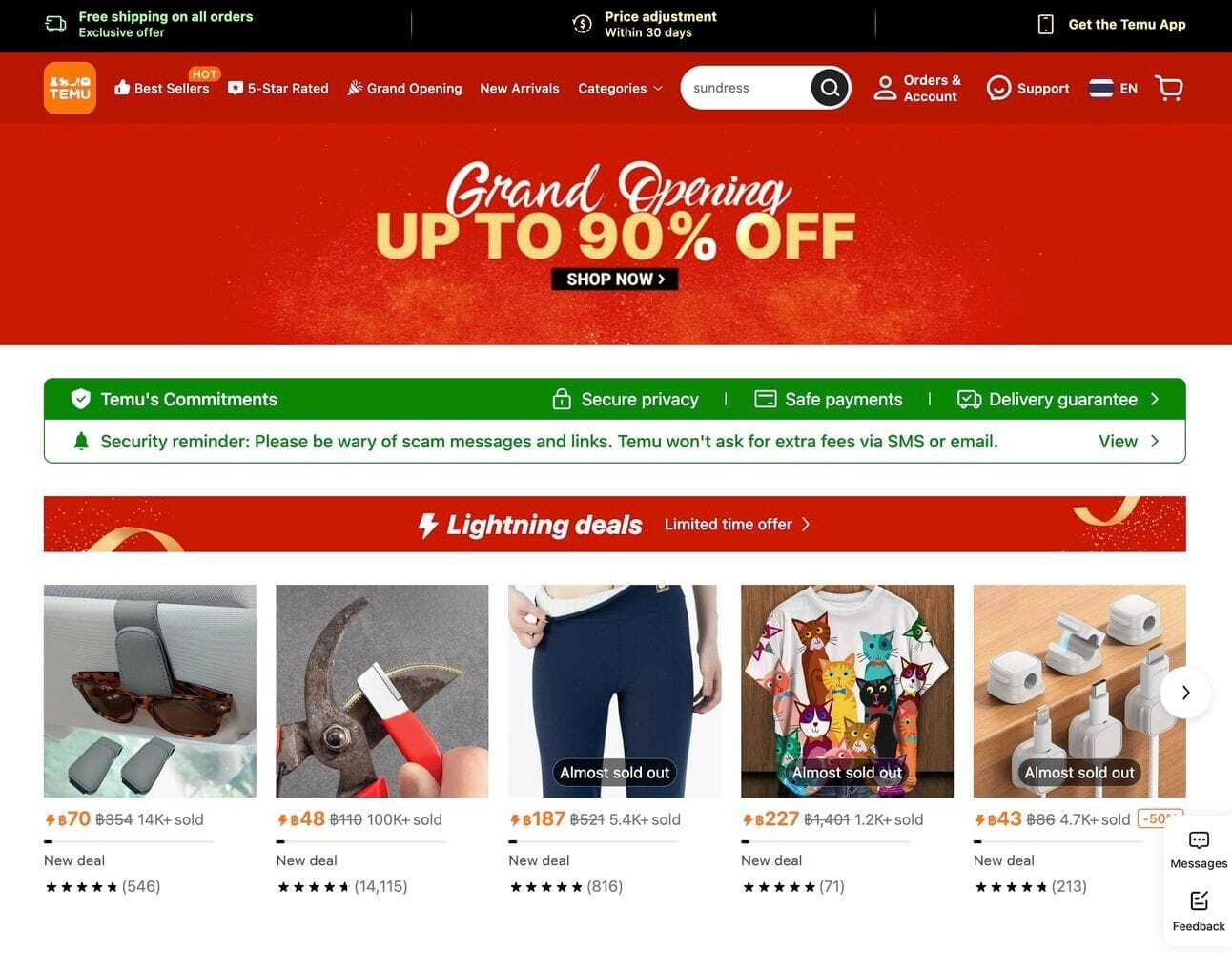 แต่ Temu จัดส่วนลดหนักกว่า 90% เกทับไปเลยจ้าา